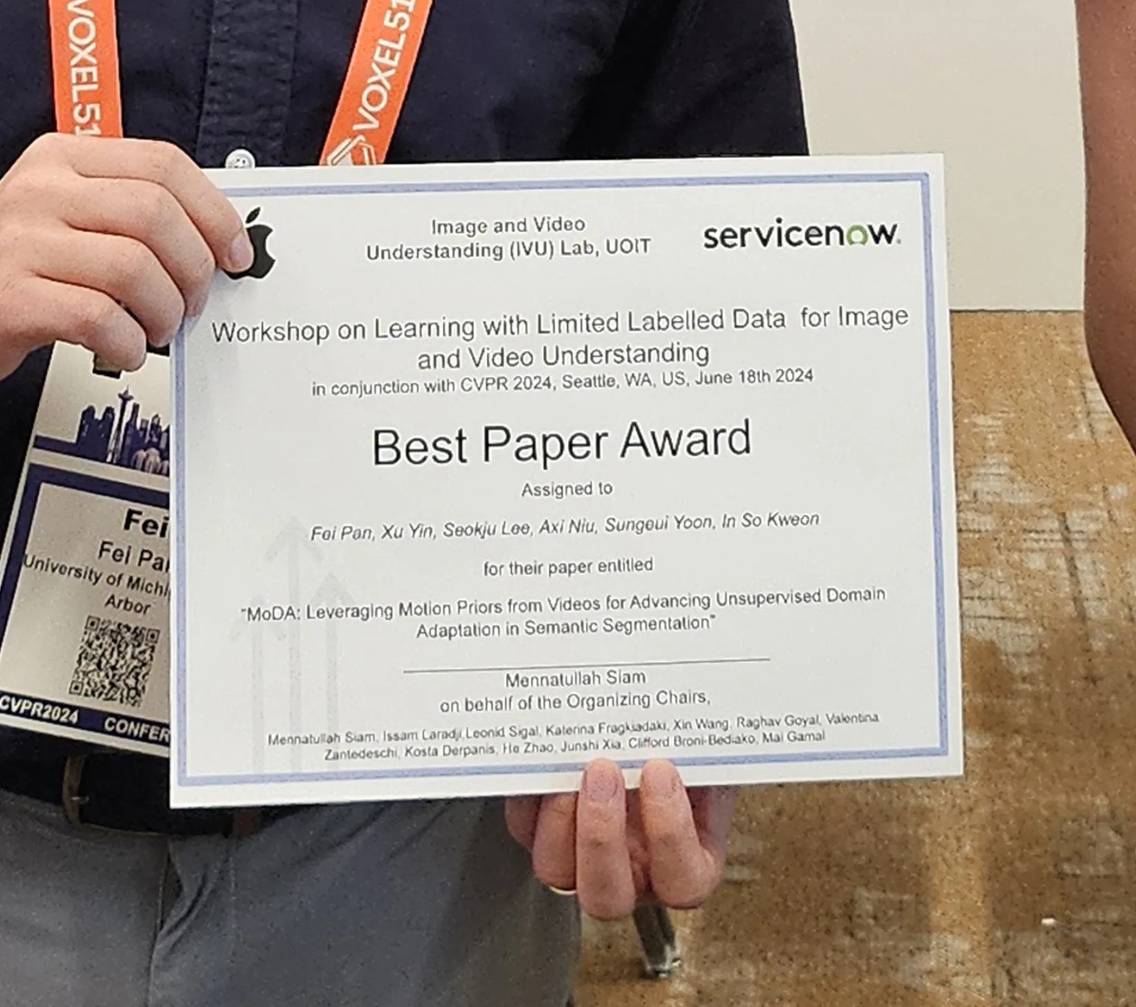 Our paper, MoDA, wins Best Paper Award at CVPR Workshop on Learning with Limited Labelled Data for Image and Video Understanding (L3D-IVU).