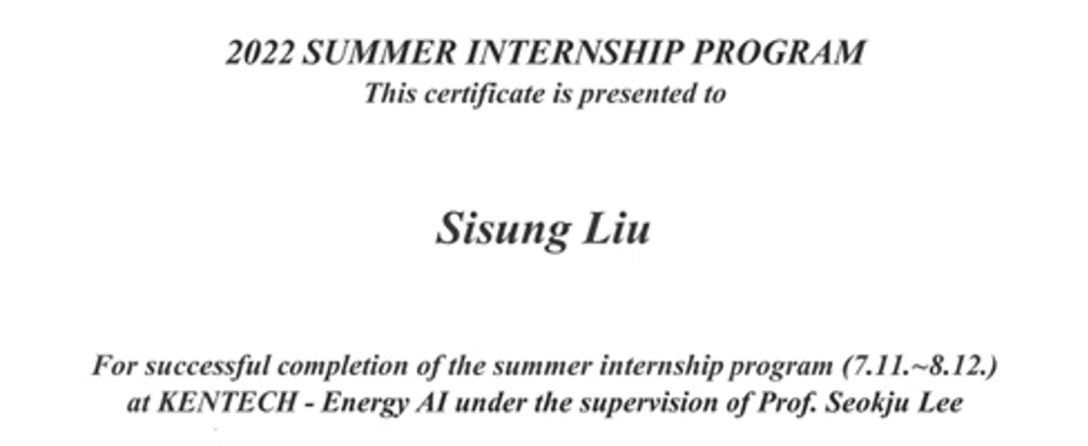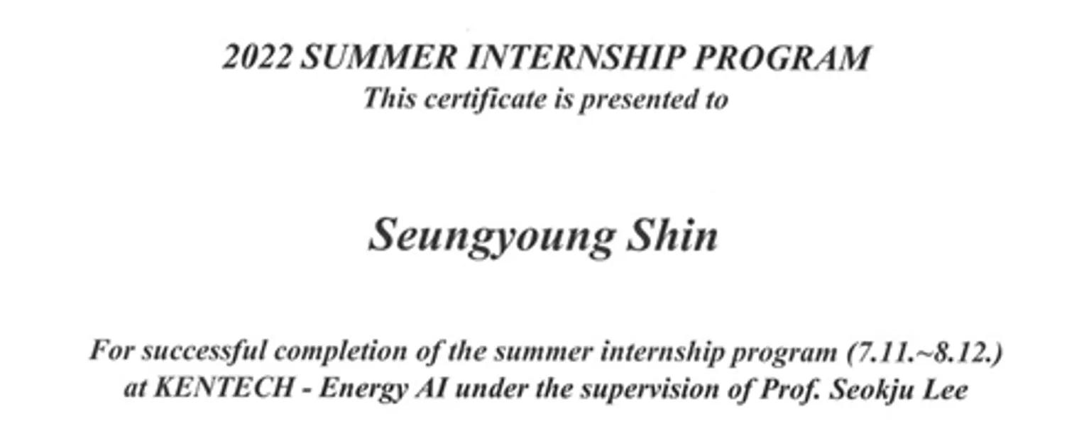 Seungyoung Shin & Sisung Liu successfully completed 2022 KENTECH Summer Internship Program. Congrats!